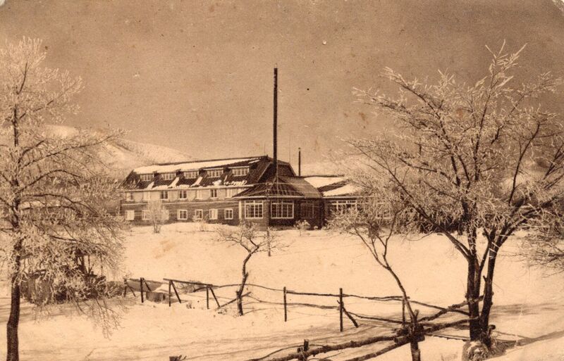 Paisaje invernal, nieve, casa, tarjeta postal, tono sepia