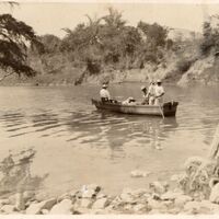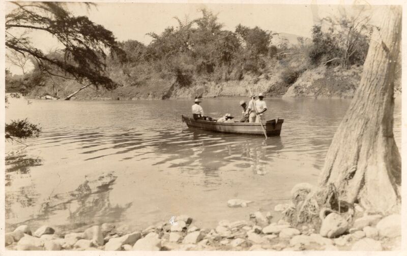 Paisaje fluvial, río Valles, lancha, vegetación, México
