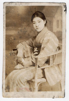 Mujer japonesa no identificada con kimono en foto de estudio -