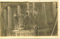 Hilario Alvarez y su equipo trabajan en el altar mayor del Santuario de Guadalupe de Sayula, Jalisco. -